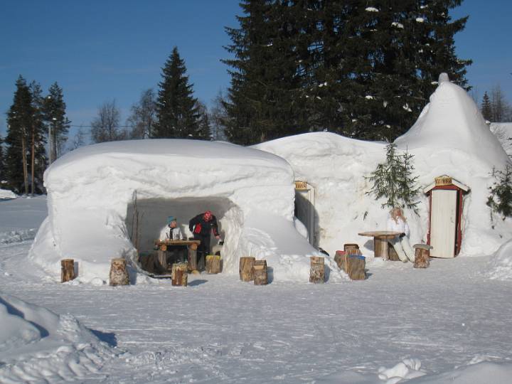 IMG 0121 | In der Nähe von Kuusamo, etwa 20 km vor dem Ziel, einem Hotel mit Sprudel-Schwimmbad in Petäjälampi bei Kuusamo. In allen Unterkünften, auch den einfacheren, gibt es aber immer eine Sauna. In Petäjälampi ist sie verbunden mit der Möglichkeit, in einem Eisloch des angrenzenden Sees zu baden. Das ist aber nichts mehr für meinen Warmduscher-Geschmack. Man kann sich abends auch immer massieren lassen sowie seine Ski von einem finnischen Servicetechniker präparieren lassen - Fürwahr "spätrömische Dekadenz"! | ![]() |