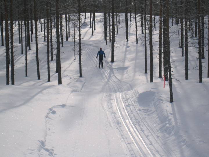 IMG 0140 | 3. Tag: Nach erfrischendem Auf und Ab über Gletschermoränen im Loipengebiet bei Taivalkoski verlässt man selbiges und bricht, durch die Motorschlittenspur unterstützt, durch den Wald | ![]() |