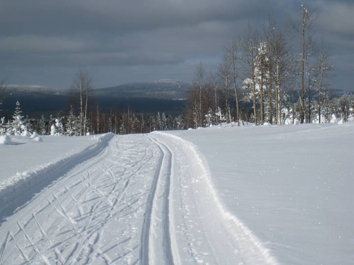 Fast am Ziel: Selbiges ist, nur noch 20 km und zwei größere Anstiege entfernt, auf dem abgebildeten Gipfel (Skigebiet Syötekeskus) positioniert