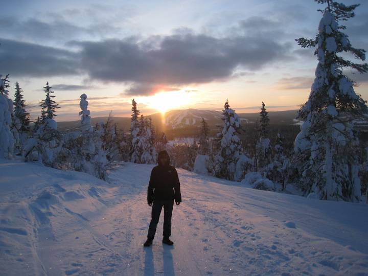 IMG 0191 | Ziel der dritten Etappe: Hotel im Pistengebiet auf dem Syötekeskus-Gipfel. Der By-fair-Means-Gedanke verbietet es, den eigentlich vorgesehenen Schlepplift zu benutzen. Die Piste war allerdings auch eher finnisch flach und man kam sie gut mit LL-Skiern hoch. | ![]() |