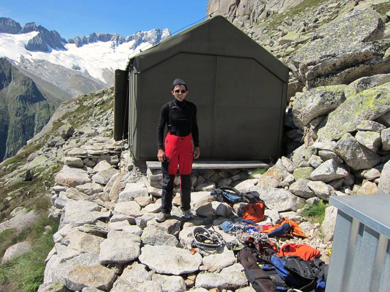 Das Salbit Biwak. Sehr gemütlich, da nur eine weitere Seilschaft (aus Südtirol) zugange war