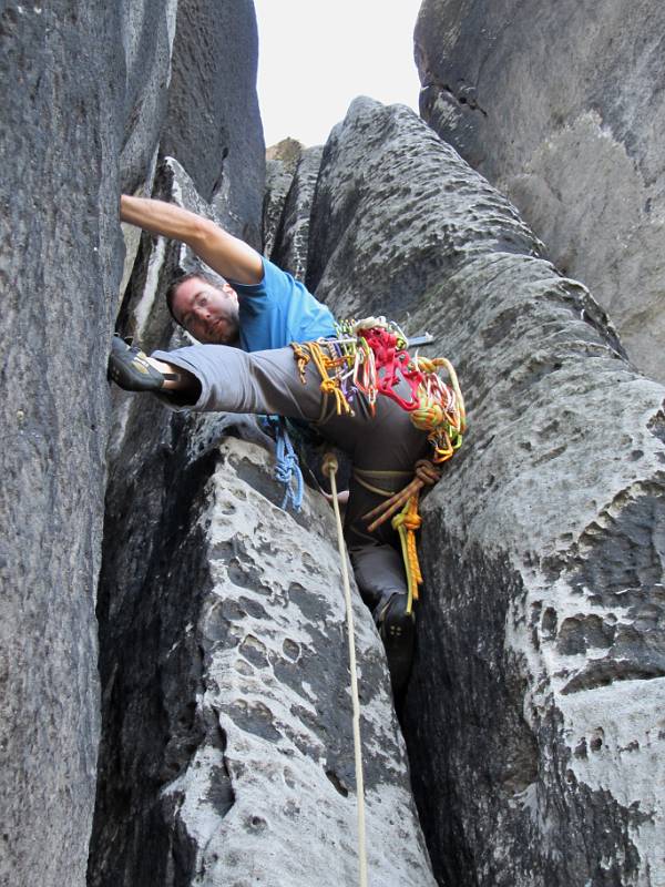 Die 2.SL der NW-Kante. Leichte, aber anregende und klassische Falkenstein-Risskletterei