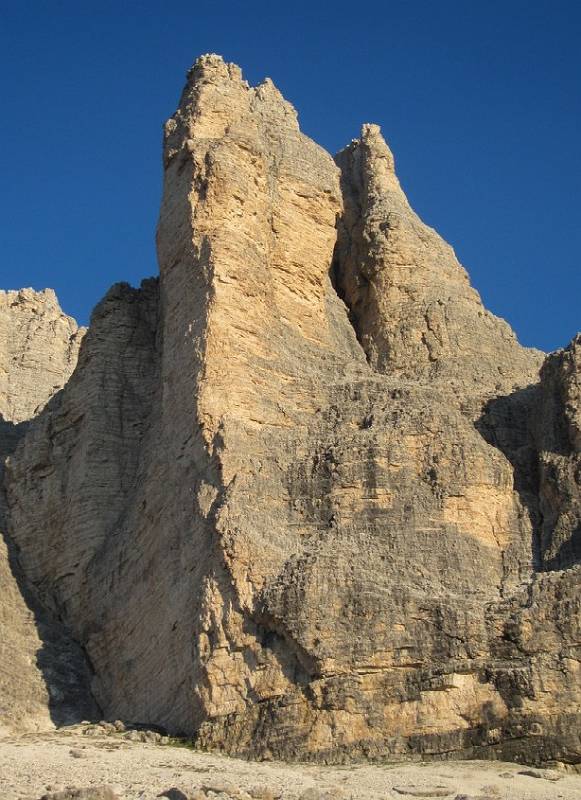 Kleine Zinne von Süden "Rechts (Licht und Schatten) die Gelben Kante und links in der S-Wand die "Perlen vor die Säue"