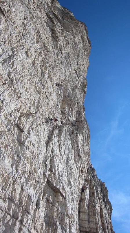 IMG 5591 PerlenSaeue small | Am Wandfuß der "Perlen vor die Säue" "Auftrieb in den Perlen und auch in der Gelbe Kante (rechts). Das Kletterniveau hat sich offensichtlich gesteigert. Früher war solch ein "Begängnis" in einer Alpen-VIII+ eher unüblich ..." | ![]() |
